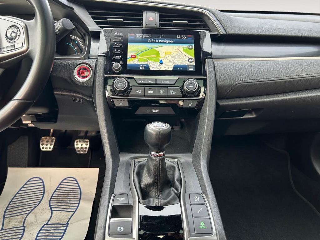 2 Prises USB3ème feu stop surélevé8 haut-parleursAccoudoir central arrière avec porte-gobeletAffichage multifonctionsAide au stationnement avant/arrièreAirbag conducteur à double mode de déclenchement (i-SRS)Airbag passager avant déconnectableAirbags latéraux avantAirbags rideauxAlerte de franchissement de ligne LDW (Lane Departure Warning)Allumage automatique des projecteursAncrages Isofix aux places latérales arrièreAntenne de toit « aileron de requin »Appuis-tête avant anti coup du lapinAssistance au démarrage en côte (HSA)Assistance au freinage d'urgenceBanquette arrière rabattable 40/60Calandre noireCaméra de reculCeintures de sécurité avant et arrière à prétensionneurChargeur sans fil pour SmartphoneClimatisation automatique bi-zoneCommandes audio au volantDéverrouillage des portières par télécommande en deux tempsDAB : digital audio broadcasting (diffusion audio numérique)Direction à assistance électrique variableDirection assistée électrique adaptative (MA-EPS)Eclairage d'ambiance rougeEclairage de coffreEclairage de la boîte à gantsEclairage intérieur par plafonnierEssuie-glace à déclenchement automatiqueFeux de jour à LEDFeux de route actifs (HSS)Fonction ECON déconnectableFrein de stationnement électronique avec maintien de freinageHonda CONNECTIndicateur de changement de rapport optimal SILJantes alliage 17''Kit de réparation anti-crevaisonLave-phares haute pressionLigne de vitrage avec cerclage chroméeLimiteur de vitesse intelligentLKAS (système d'assistance au maintien dans la voie de circulation)Lumière de courtoisieMiroirs de courtoisie éclairésNavigation GARMIN pour Honda CONNECTPédalier alliagePhares à LEDPlage arrièrePneumatiques 235/45 R17Poche aumônière au dos du siège conducteurPoche aumônière au dos du siège passagerPoignées de portes couleur carrosseriePommeau de levier de vitesses en cuirPrise 12V à l'avantPrise 12V aux places arrièrePrise auxiliairePrise HDMIProjecteurs antibrouillard à LEDRéglage en hauteur manuel du siège conducteurRéglages lombaires électriques des sièges conducteur et passagerRégulateur de vitesse adaptatif intelligent (i-ACC)Répartiteur électronique de freinage (EBD)Rétroviseur intérieur électrochromeRétroviseurs extérieurs chauffants réglables électriquementRétroviseurs extérieurs couleur carrosserieRétroviseurs extérieurs rabattables électriquementRétroviseurs extérieurs rabattables par télécommandeSiège conducteur à réglages électriques 8 directionsSièges avant chauffantsSignal de freinage d'urgence automatiqueSpoilerSubwooferSystème d'alarmeSystème d'avertissement anticollision avant (FCW)Système d'immobilisation électroniqueSystème de coupure automatique du moteur à l'arrêt Auto StopSystème de déverrouillage et de démarrage sans cléSystème de freinage antiblocage (ABS)Système de prévention des collisions par freinage (CMBS)Système de protection anti-sortie de routeSystème de reconnaissance des panneaux de signalisation TSR (Traffic Sign recognition)Système de surveillance de l'angle mort (BSI) avec alerte de véhicule en approche (CTM)Système de surveillance de la pression des pneumatiques (DWS)Système de téléphonie mains-libres BluetoothSystème de temporisation de l'allumage/extinction des feuxToit ouvrant en verreVitres électriques avant et arrière à impulsion et télécommandéesVitres surteintéesVolant cuirVolant réglable en hauteur et en profondeurVSA (contrôle électronique de trajectoire)