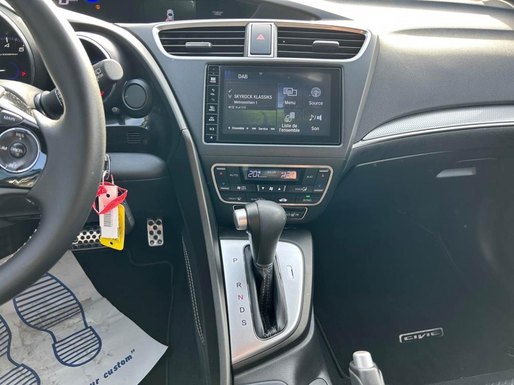 "Sièges Magiques" à l'arrière2 prises USB & prise HDMI3ème feu stop surélevé6 haut-parleursAccoudoir arrièreAide au démarrage en côte (HSA)Airbag conducteur à double mode de déclenchementAirbag passager déconnectableAirbags latéraux avantAirbags rideauxAlarme antivolAllumage automatique des projecteursAncrages de fixation du filet de séparationAncrages ISOFIX (Sièges latéraux arrière)Antenne de toit « aileron de requin »Appuis-tête avant anti coup du lapinAssistance au freinage d'urgenceCaméra de recul avec guides dynamiquesCeintures de sécurité arrière à prétensionneursCeintures de sécurité avant à prétensionneurs à double déclenchementClimatisation automatique bi-zoneCommandes audio au volantCrochet d'arrimage dans le coffreDéverrouillage des portières par télécommande en deux temps et déverrouillage du hayonDirection à assistance électriqueDisques de frein arrière pleins de 15''Disques de freins avant ventilés de 16''Eclairage de coffreEclairage de courtoisie intérieurEspace de chargement inférieur dans le coffreEssuie glace arrièreEssuie-glace à déclenchement automatiqueFeux de jour à LEDFonction ECON déconnectableHonda CONNECTIllumination bleutée du tableau de bordIndicateur de changement de rapport optimal SILJantes alliage 17''Kit de réparation anti-crevaisonLave-pharesLiseuses avantMiroirs de courtoisie éclairés intégrés aux pare-soleilNavigation GARMIN & Lecteur CD compatible MP3 pour Honda CONNECTOrdinateur de bord multifonction intelligent (i-MID)Palettes de changement de rapports au volantPhares halogènesPlage arrièrePneumatiques 225/45 R17Poche aumônière au dos du siège passagerPommeau de levier de vitesses en cuirPrise 12V à l'avantPrise 12V dans la console centralePrise 12V dans le coffreProjecteurs antibrouillardRails de toit noirsRéglage en hauteur manuel du siège conducteurRégulateur et limiteur de vitesseRépartiteur électronique de freinage (EBD)Rétroviseurs extérieurs rabattables électriquementRétroviseurs extérieurs rabattables par télécommandeRétroviseurs extérieurs réglables et dégivrants électriquementSellerie tissuSièges avant chauffantsSignal de freinage d'urgence automatiqueSystème actif de freinage d'urgence en ville CTBA (City-Brake Active System)Système antiblocage des roues ABSSystème d'immobilisation électroniqueSystème de surveillance de la pression des pneumatiques (DWS)Système de téléphonie mains-libres BluetoothTemporisation de l'extinction/allumage des feuxVerrouillage centralisé et deux clés rétractablesVitres électriques arrière à impulsionVitres électriques avant à impulsionVitres électriques télécommandéesVolant gainé cuirVolant réglable en hauteur et en profondeurVSA (contrôle électronique de trajectoire)