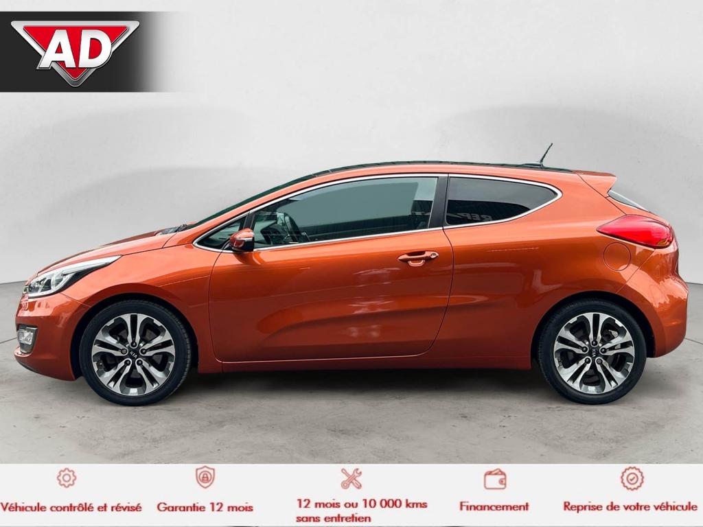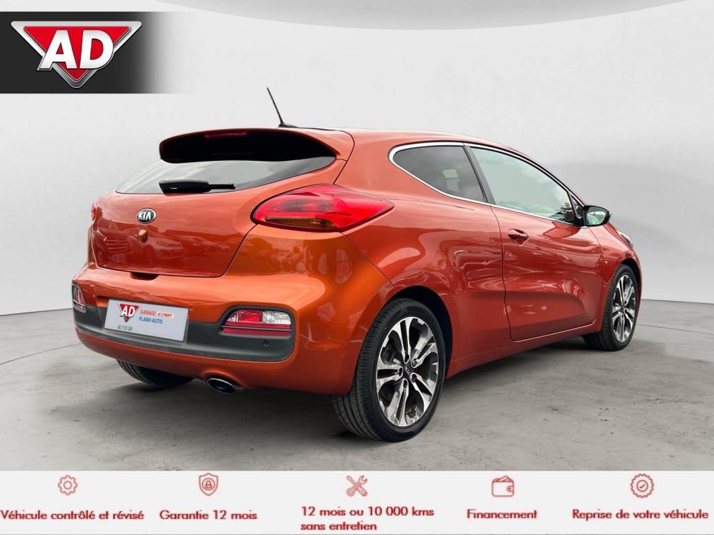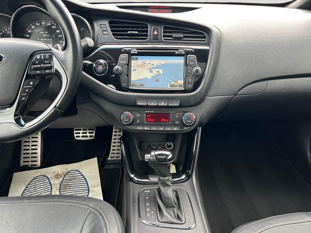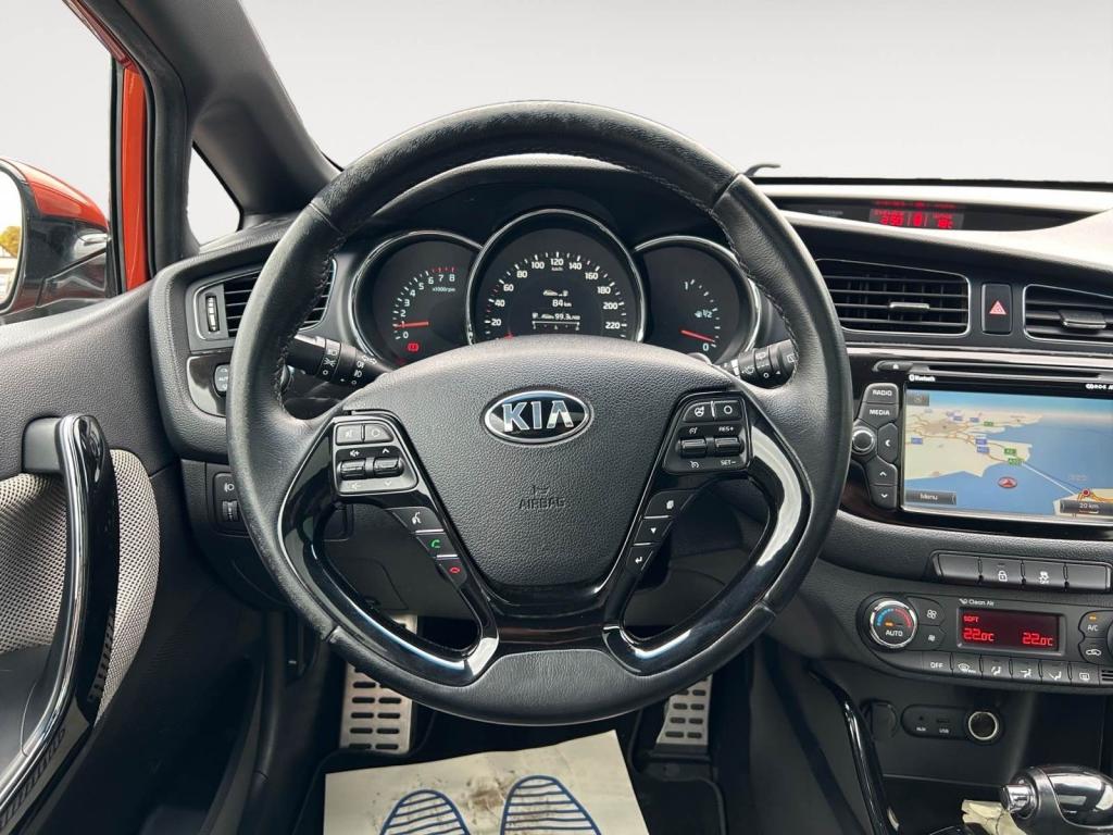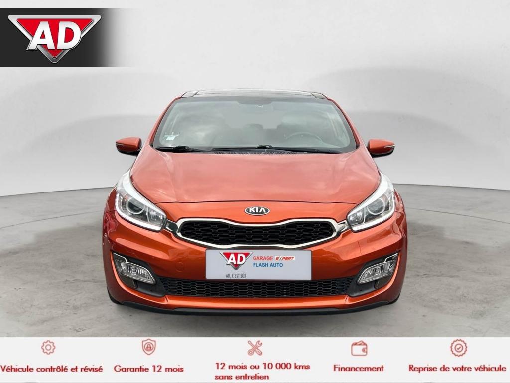 ABS avec répartiteur électronique de freinage (EBD)Aide au stationnement arrièreAirbags frontaux conducteur et passager (déconnectable côté passager)Airbags latéraux conducteur et passagerAirbags rideaux avant et arrièreAlarme antivol périmétrique anti-intrusionAllumage automatique des feux de détresseAllumage automatique des projecteursAllumage temporisé des projecteurs après verrouillage du véhicule (fonction escorte)Application aspect chrome : entourages d'aérateurs, commande d'instrumentation, entourage de levier de vitesse, bouton de frein de parking, poignées intérieures des portesApplication noir laqué sur la partie centrale de la planche de bord, sur le volant et les contre-portesApplication noire sur la partie supérieure de la planche de bordAppuie-tête avant et arrière règlables en hauteurAssistance au démarrage en côteAssistance au freinage d'urgenceAssistance de direction modulable Flex Steer (3 modes : Confort, Normal, Sport)Bacs de rangement dans les contre-portes avantBecquet arrière avec 3ème feu stop intégréBoîte à gants illuminée et réfrigéréeCaméra de reculCeintures de sécurité avant à prétensionneurs, limiteur d'effort et réglage en hauteurClimatisation automatique à régulation séparée conducteur et passagerCommutateur ECO : optimisation des changements de rapportsCompartiment range-lunettes dans la console de pavillonCompartiments de rangement sous le plancher de coffreCompteur central de tableau de bord TFT 7” (écran couleur multifonction)Connectique audio AUX, USB et iPodConsole centrale avec compartiment de rangement fermé, accoudoir coulissant et compartiment porte-gobelets ferméContour de calandre aspect chrome et application noir laqué sur grille de calandreContrôle de la pression des pneumatiquesContrôle électronique de la trajectoire (ESC)Coques de rétroviseurs et poignées de portes couleur carrosserieCrochets de fixation dans le coffreDésembuage automatique du pare-briseDéverrouillage automatique des portes en cas de collisionDirection à assistance électrique asservie à la vitesseDossier de banquette arrière rabattable 60/40Double prise 12 volts sur la partie inférieure de la planche de bordEclairage d'ambiance intérieure sur la partie inférieure de la planche de bordEclairage de coffreEclairage statique d'intersectionEclairage temporisé de l'habitacleEmbase de rétroviseurs noir laquéEntourage des vitres latérales et des projecteurs antibrouillard aspect chromeEssuie-glace à déclenchement automatiqueEssuie-vitre arrièreEssuie-vitres avant à intermittenceExtracteurs d'air pour les passagers arrière au dos de la console centraleFeux avant diurnes et feux arrière à LEDFilet de coffreFrein de parking électriqueJantes alliage 17''Kit de dépannage en cas de crevaisonLève-vitres électriques avant à commande séquentielle et anti-pincementOrdinateur de bordOuverture et démarrage sans clé “Smart Key”Pare-soleil avec miroir de courtoisie illuminé conducteur et passagerPédalier et repose-pied aspect aluminiumPoches aumônières au dos des sièges avantPrise 12V dans le coffreProjecteurs antibrouillardPurificateur d'air (ioniseur)Radio CD / MP3, avec écran tactile TFT 4,3”, 6 haut-parleurs (dont 2 tweeters), avec commandes au volantRégulateur de couple et assistance au contre-braquage (VSM)Régulateur et limiteur de vitesseRétroviseur intérieur électrochromeRétroviseurs extérieurs électriques et dégivrantsRétroviseurs extérieurs rabattables électriquement avec répétiteur de clignotantSellerie cuir “Club” noir avec inserts tissu et surpiqûresSeuils de porte avant avec badge “cee'd”Sièges avant à réglage lombaire électriqueSièges avant avec fonction facilitant l'accès aux places arrièreSièges avant réglables en hauteurSpots de lecture avant et arrièreSystème de dégivrage du bas de pare-briseSystème de fixation ISOFIX sur sièges arrièreSystème de téléphonie mains-libres Bluetooth avec reconnaissance vocale et fonction streaming audio (selon compatibilité du téléphone)Témoins de non-bouclage des ceintures avant et arrièreToit vitré ouvrant / entrebâillant électriquement, avec rideau occultant électriqueVerrouillage automatique des portes asservi à la vitesseVerrouillage centralisé à distanceVitres arrière et lunette arrière surteintéesVolant réglable en hauteur et en profondeurVolant, pommeau de levier de vitesses et frein à main gainés cuir