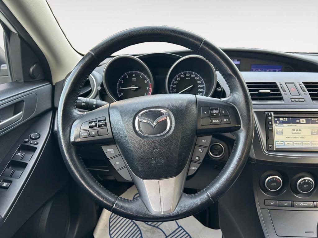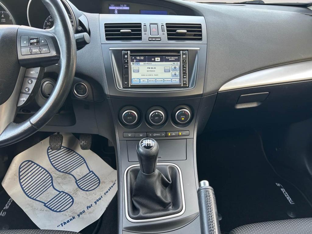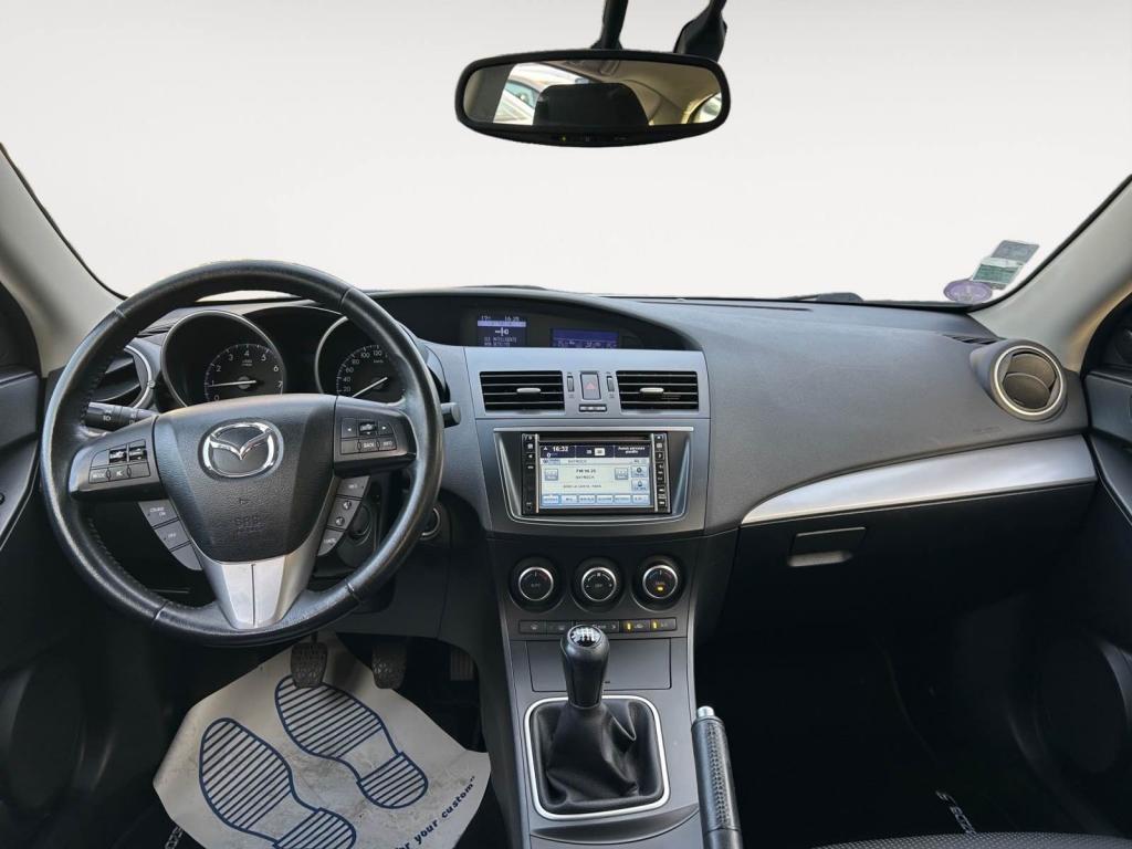 Activation automatique des feux de détresse en cas de freinage d'urgenceAffichage multi-informations (MID), avec ordinateur de bord et niveau de la température extérieureAide au stationnement arrièreAirbags latéraux avantAirbags rideaux avant et arrièreAllumage automatique des projecteursAssistance au freinage d'urgenceAumônière de siège (côté passager)Auto-radio modulaire AM/FM / lecteur de CD compatible MP3, 6 haut-parleursBecquet arrière Couleur carrosserie, type standardBoîte à gants éclairéeBoucliers avant et arrière couleur carrosserieCadrans noirs, avec éclairage blancCeinture de sécurité : 2 ceintures avant 3 points (ELR) avec prétentionneursCeinture de sécurité : 3 ceintures arrière 3 points (ELR)Climatisation automatique bi-zoneCommande d'éclairage de tableau de bord avec réglage d'intensitéCommandes audio au volantCompartiment à bagages éclairéConsole de plafond, avec porte-lunette de soleilContrôle dynamique de stabilité (DSC) et antipatinage électronique (TCS)Direction assistée électriqueDouble airbags avantEspaces de rangement dans les portes avant et arrièreEssuie-glace à déclenchement automatiqueEssuie-glace arrière à vitesse réglable avec fonction intermittenteEssuie-glace avant, à vitesse réglable, avec fonction intermittente et lave-glace électriqueFeu arrière antibrouillardFeux arrière Technologie LEDHorloge numériqueIndicateur de passage de rapportsKit anti-crevaisonKit main libres et système BluetoothLève-vitres électriques arrièreLève-vitres électriques avant avec commande à impulsion côté conducteurPare-soleil côtés conducteur et passager, avec miroir de courtoisie éclairéPhares avant halogènesPneus 205/50 R17 sur jantes alliage 5x2 branches 7.0JJ 17" (design 143)Poignée de maintien, côté passager avant et deux crochets porte-manteaux à l'arrièrePoignées de porte intérieures avant et arrière, argentéesPoignées de portes couleur carrosseriePoignées de portes éclairage séquentiel d'accueil du conducteur et éclairage des commandes de la climatisation automatiquePommeau de levier de vitesses en cuirPrise jack AUXProjecteurs antibrouillardRappel de phares allumésRéglage des lombaires du côté conducteurRégulateur de vitesse avec commandes au volantRépartiteur électronique de freinage (EBD)Rétroviseur intérieur électrochromeRétroviseurs extérieur chauffants, réglables et rabattables électriquement avec coques couleur carrosserie, grand angle côté conducteurSièges arrière avec accoudoir centralSièges arrière rabattable 60/40Sièges avant avec acccoudoir central coulissant avant avec espace de rangement et deux porte-gobeletsSièges avant et appuie- tête intégré en hauteur et en longueur du côté conducteurSièges avant style SportSystème d'alarme de ceinture de sécurité avant avec signal sonoreSystème d'ancrage des sièges enfants ISOFIX à l'arrièreSystème d'antiblocage des freins pour les quatre roues (ABS)Système d'antidémarrageSystème de navigation avec écran d'affichage couleur 5,8'' - TomTom SanyoSystème de Retenue Supplémentaire (SRS)Système Mazda d'absorption et de répartition des chocs et structure de coque en triple H pour mieux protéger les occupants en cas de collisionTroisième feu stop arrière, monté en hauteurVerrouillage centralisé à télécommande avec bouton de démarrage "start"Verrouillage centralisé des portes avec télécommandeVolant gainé cuirVolant réglable en hauteur et en profondeur